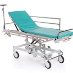 Structura tubulara din otel vopsit in camp electrostatic cu top fix acoperit cu material plastic lavabil si ignifug. Suport pentru cap rabatabil cu ajutorul unui amorizor cu gaz. Picioarele sunt dotate cu 4 roti cu diametru de 200 mm si prevazut cu frana pentru blocare. Inaltime variabila prin pompa hidraulica. Trendelenburg si reverse trendelenburg. Dimensiuni 2000 x 675 mm.