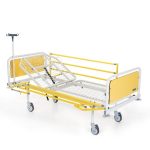 Pat spital inox cu 4 sectiuni, cu structura metalica si reglarea sectiunilor spate si picioare mecanica, cu ajutorul a doua manivele. Tabliile sunt realizate din plastic (ABS), cu cadru de inox. Somiera patului are patru segmente din plasa sudata de otel. Patul este prevazut cu protectii din plastic impotriva loviturilor si are de asemenea suport pentru perfuzie cu inaltime ajustabila.